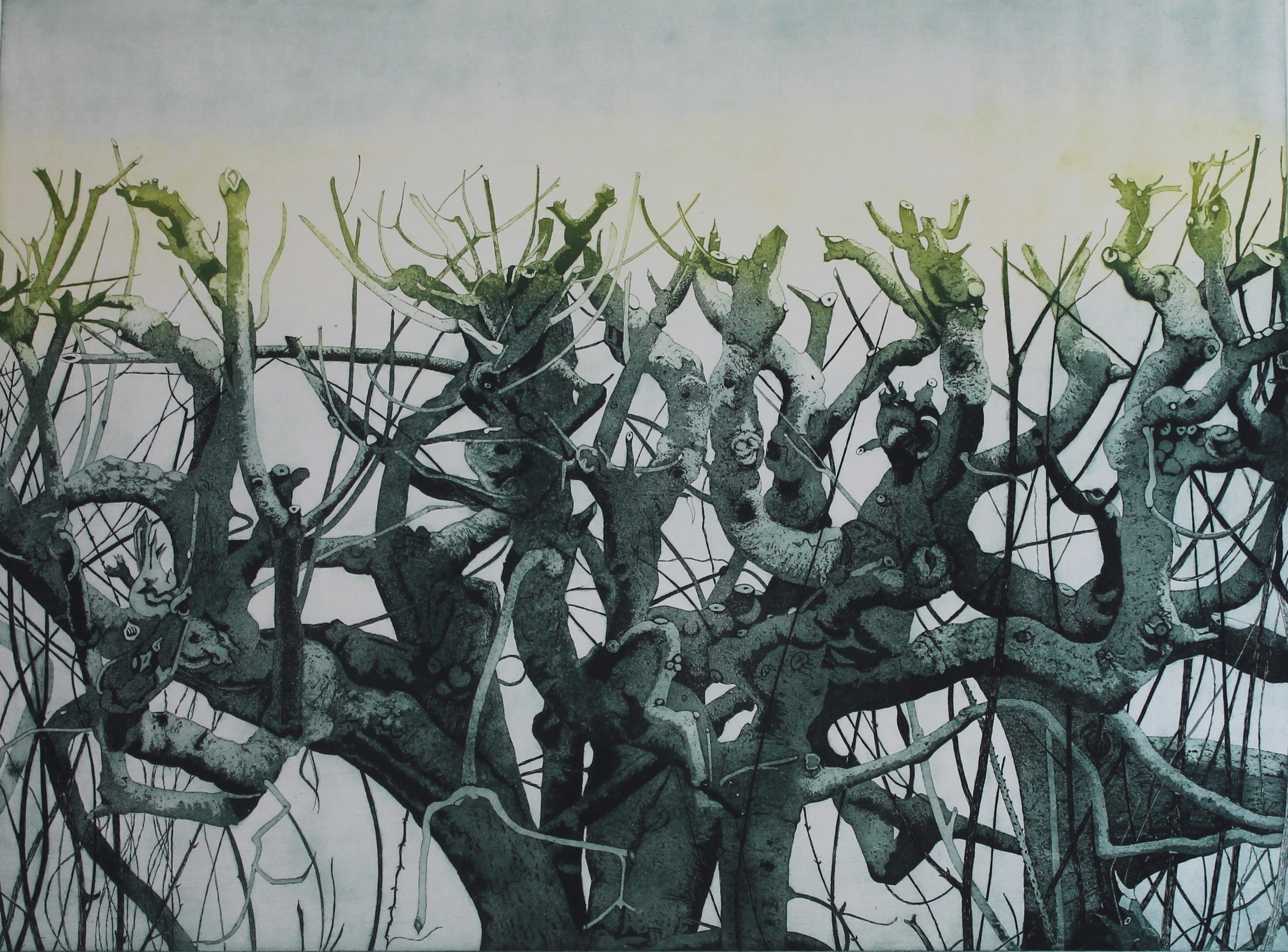 I am a printmaker based in North Dorset. Most of my work has been produced by the intaglio process of etching either copper or steel plates in limited, variable editions. I am currently exploring other printmaking processes and reconnecting with drawing.
